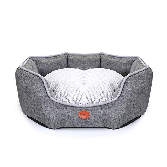 DOG HUGS CAT: Luxury Suede Bed - With Free Bone, Blanket and Summer Mat