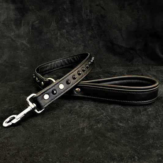 BESTIA: "STUDDED" Leash - Soft Leather - Black